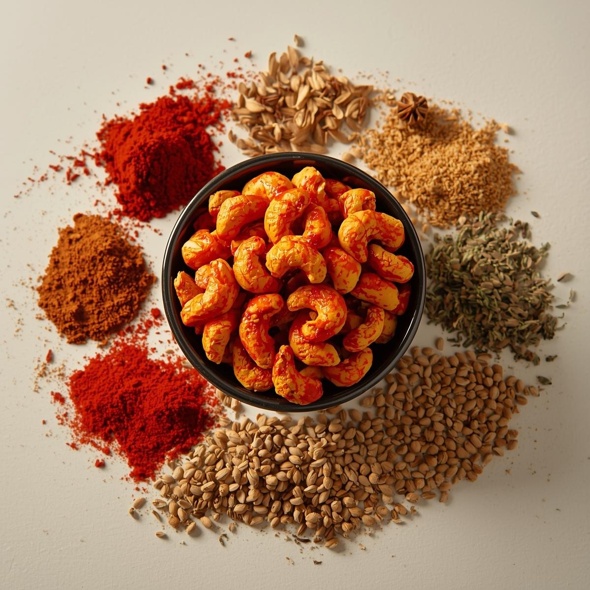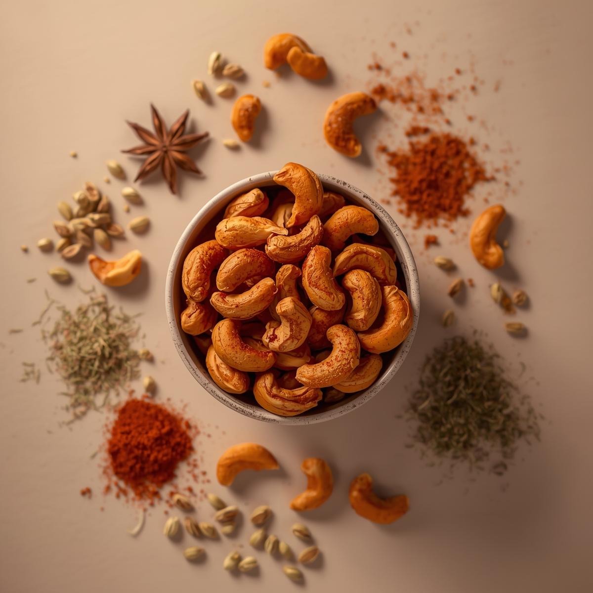 Niryanta Tandoor Flavored Cashews are made from premium whole cashew kernels, roasted to a perfect crunch and seasoned with a rich blend of traditional tandoori spices. Inspired by authentic Indian tandoor flavors, this variant offers a smoky aroma with warm spices that complement the natural buttery taste of cashews.